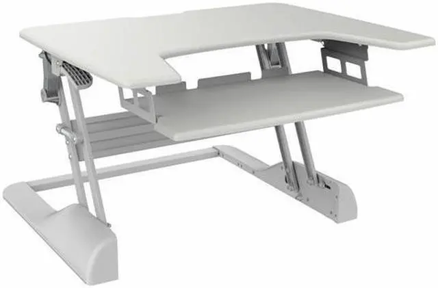 Tyger Claw Sit-Stand Desktop Workstation Stand (White) Tyger Claw TYDS14014 Sit-Stand Desktop Workstation Stand is an ultra easy sit-stand solution designed with a spacious upper display surface and lower keyboard and mouse desk. It features spring-assisted lift mechanism that lets you switch easily between sitting and standing in just a few seconds. It also holds up to 15kg/33lbs, while staying steady and solid at any height. Simple to start enjoying the health benefits of standing while you work. Features: Ergonomic keyboard tray keeps staggered height between keyboard and monitor to prevent neck strain without manual adjustments of sitting or standing Stepless height adjustment allows a comfortable standing or sitting position as you want Gas spring lifting mechanism allows to easily moving the desk up and down, even with your computer equipment Dual squeeze handles effortlessly activate and inactivate the height adjustment mode Sturdy construction keeps stable and solid even fully extended No assembly required comes ready to use out of the box Specifications: Barcode: 669716346446 Brand: Tyger Claw Color: White Product Type: simple Product Depth (inch): 25. 2 Product Width (inch): 30 Product Height (inch): 5. 1 Product Weight (lb): 45. 2 Package Depth (inch): 27. 5 Package Width (inch): 32. 5 Package Height (inch): 6 Package Weight (lb): 49. 7 Featured: No Number of Shelves: 2 Integrated Cable Management: Yes Primary Material: Steel, Plastic