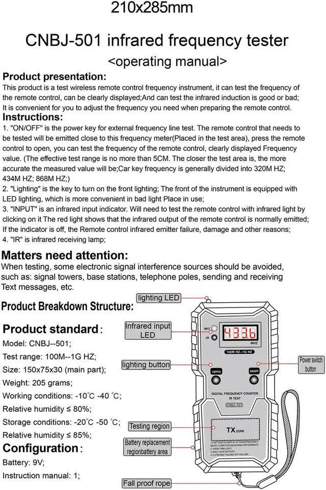 Remote Key IR Infrared Frequency Tester 100MHZ - 1GHZ Key Fob Signal Tester E7U8