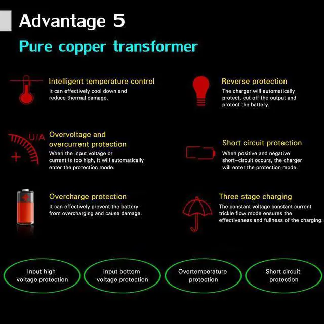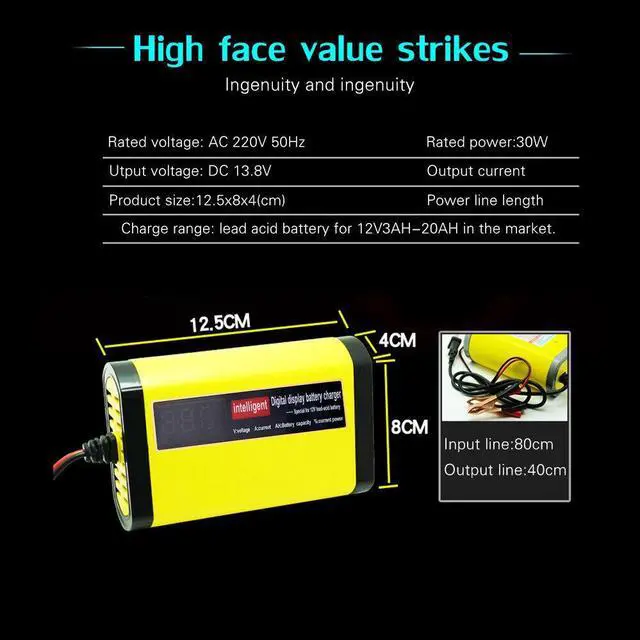 Suit for:12V, 4AH to 20AH, Lead-Acid or AGM or GEL battery