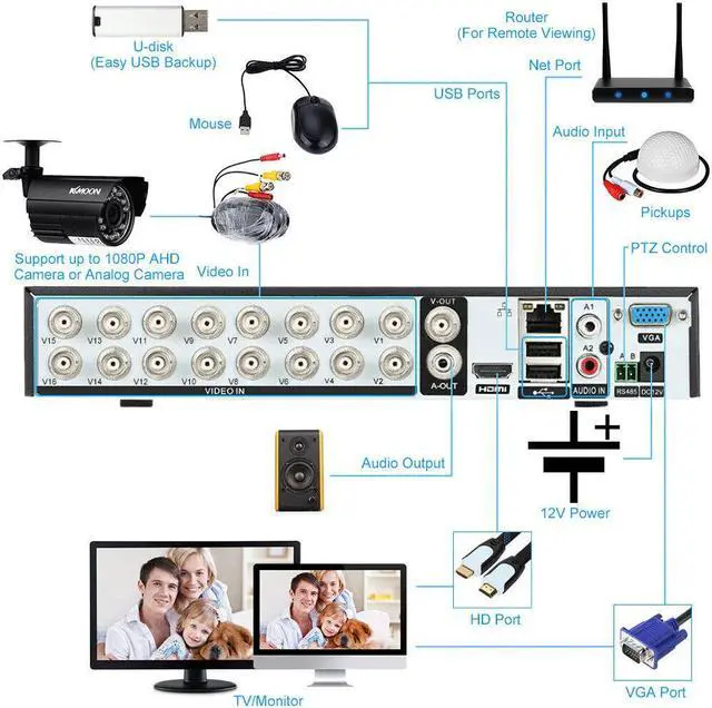 KKMOON 4/8/16CH 1080P 5in1 DVR Video Recorder For Security Camera System R6E0