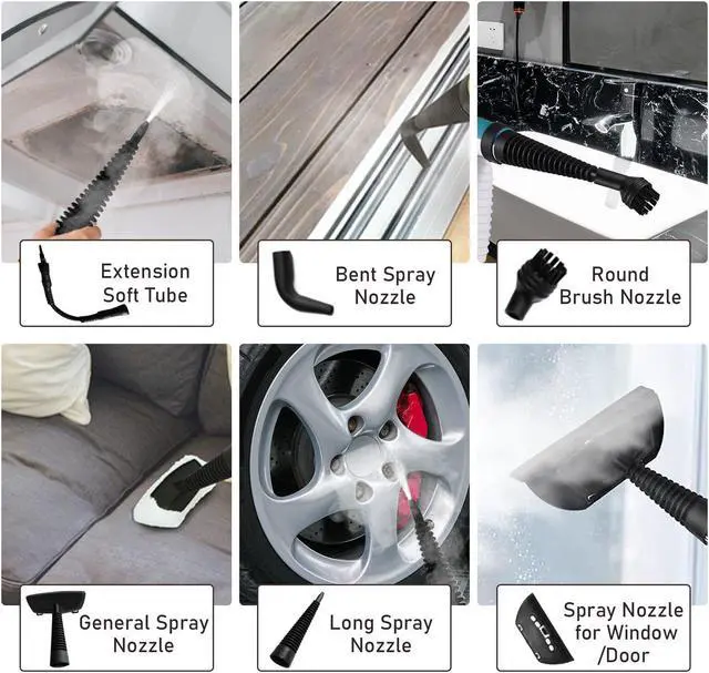 9 Accessories:brush/measuring cup/extended hose/scrubbing brush/straight nozzle