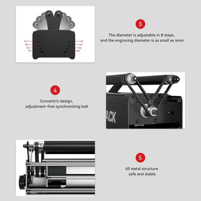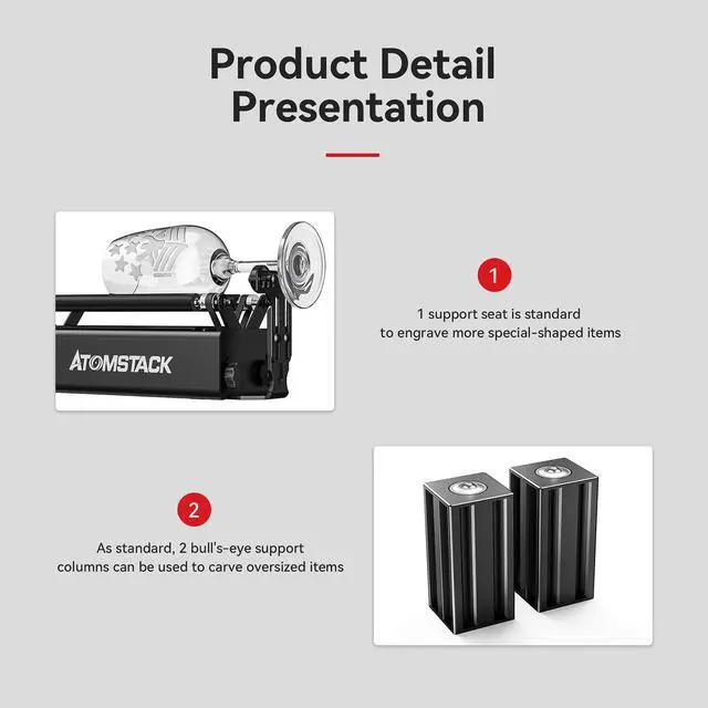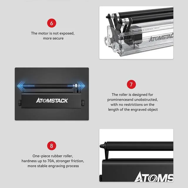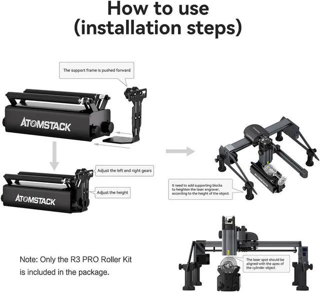 ATOMSTACK R3 PRO Laser Rotary Roller Kit 360° Rotating for Laser Engraver A9Y1