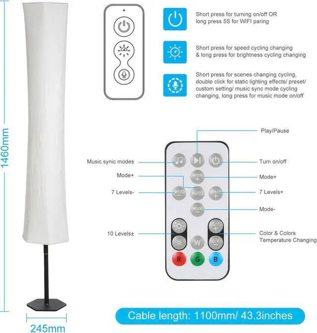 Smart LED Floor Lamp Color Changing Standing Lamp Music Sync APP Control W6G3