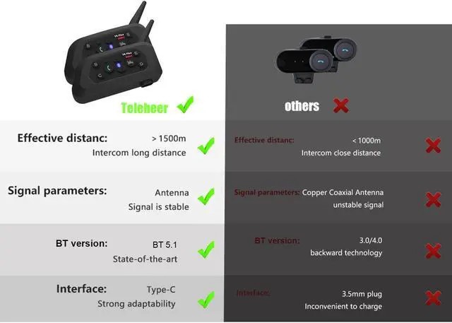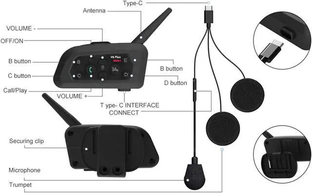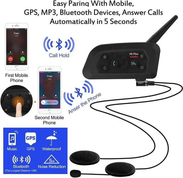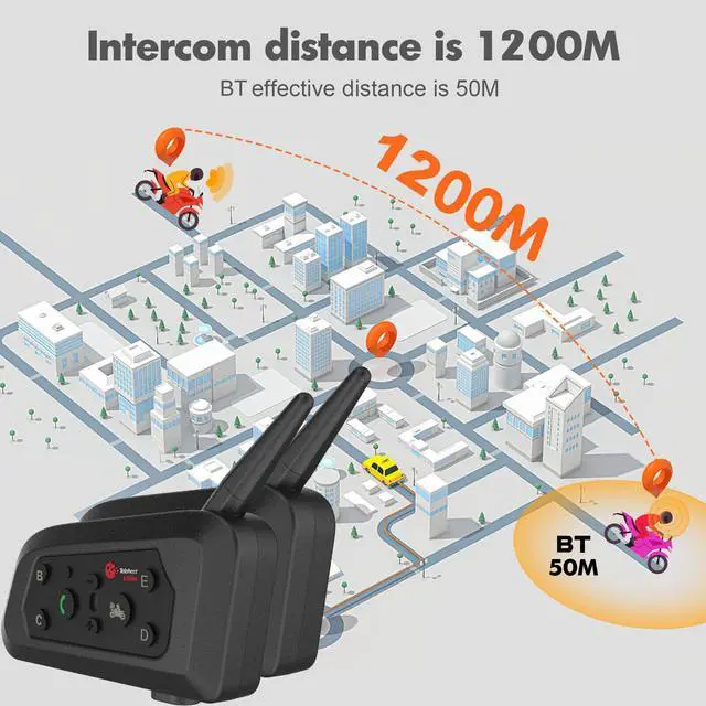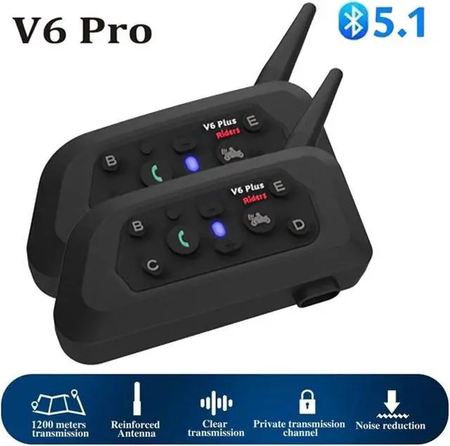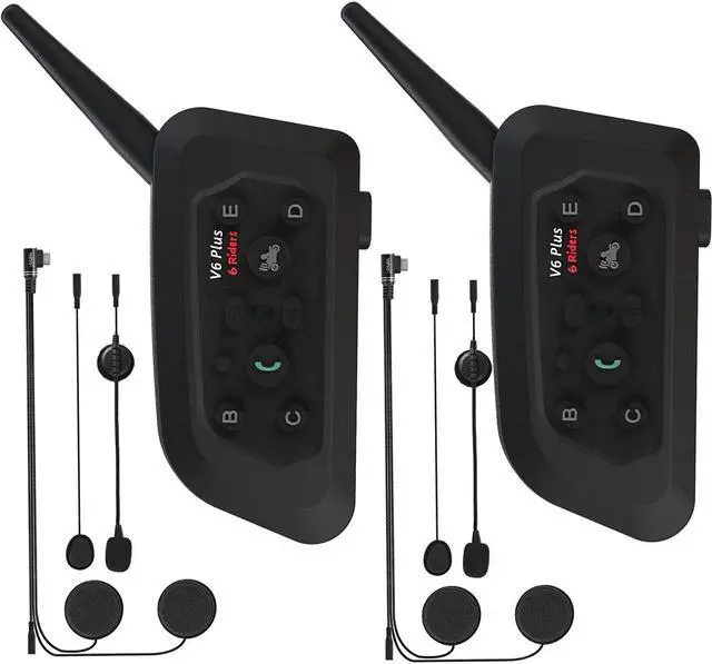 2x Motorcycle Helmet Bluetooth Headset 6Riders 2Way Intercom System 1200m N6R3