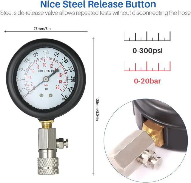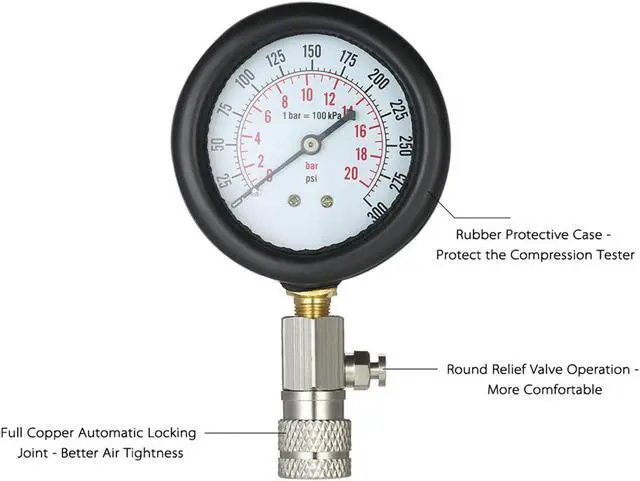 Dual Gauge Readings:0-300psi, 0-20bar (1bar=100kPa)
