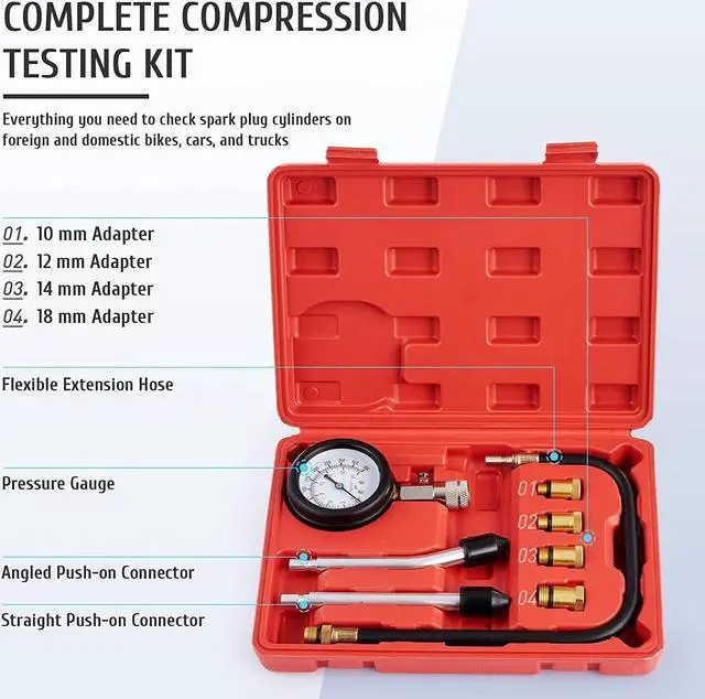8pcs Petrol Engine Cylinder Compression Tester Kit Pressure Gauge Tool USA L8V6