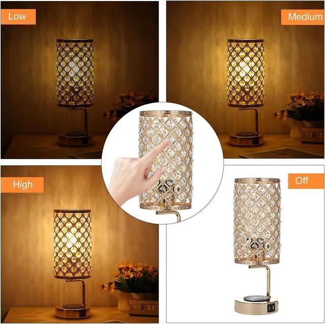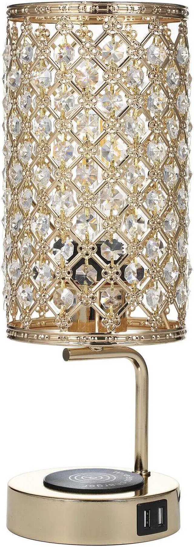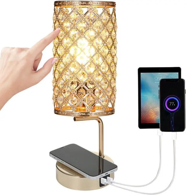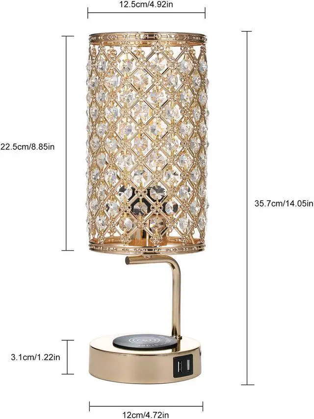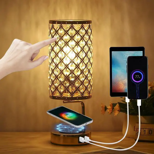Table Lamps Crystal Bedroom Desk Lamp with Dual USB Port+Wireless Charger K2Q3