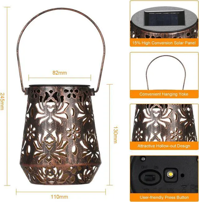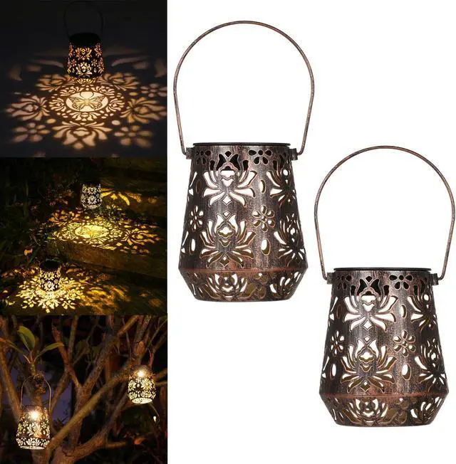 2PCS Solar LED Hanging Light Lantern Outdoor Waterproof Garden Lamp Decor P0A9
