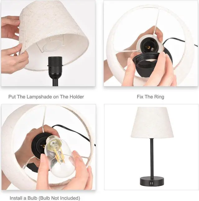 LED Bedside Desk Lamp Table light Dual USB Ports with Bulb Touch Control L4N4