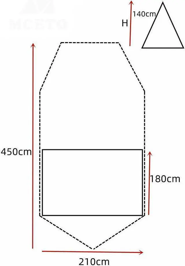 Tent size:450*210*140CM / 177*82.7/55in