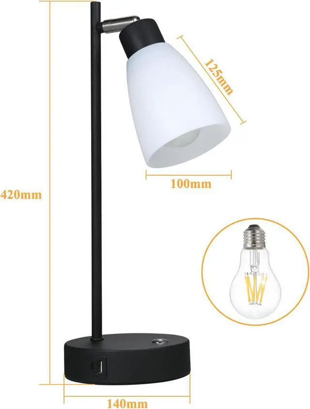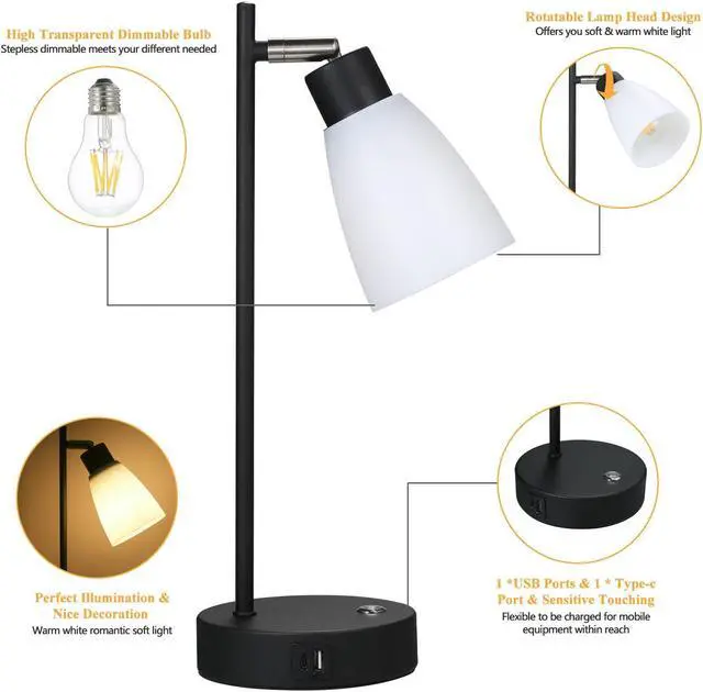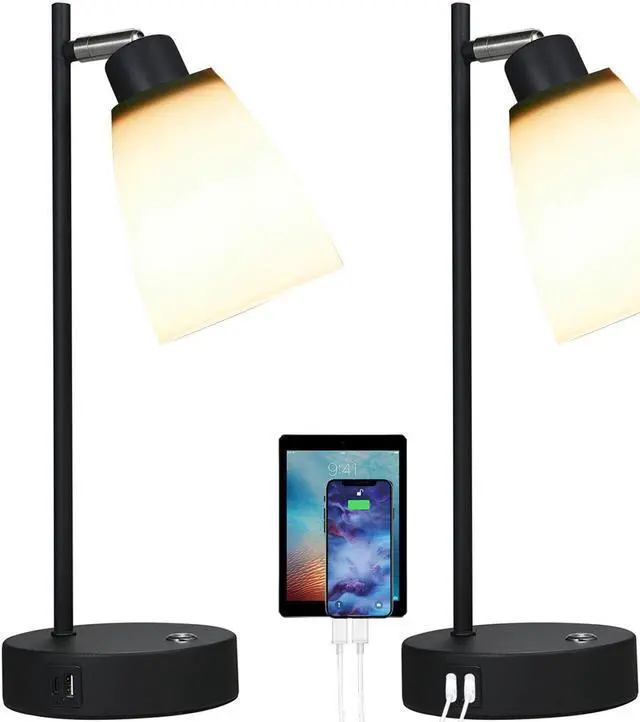 Set Of 2 Industrial Touch Control Table Lamps 1 Type-C/1 USB Ports Dimmable L8C9