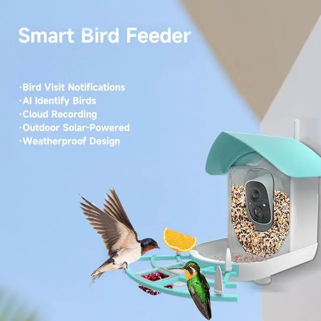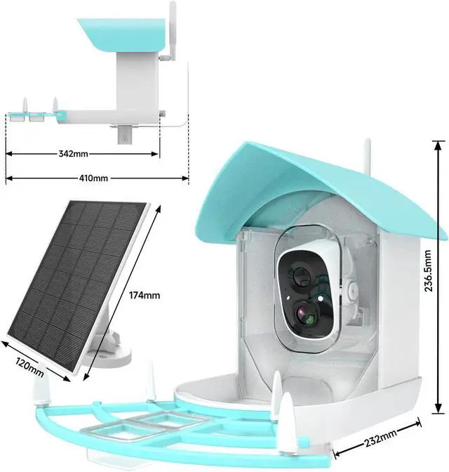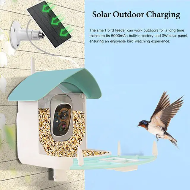 Aoresac Smart Bird Feeder Camera Solar Powered Outdoor Charging Bird House K3S4