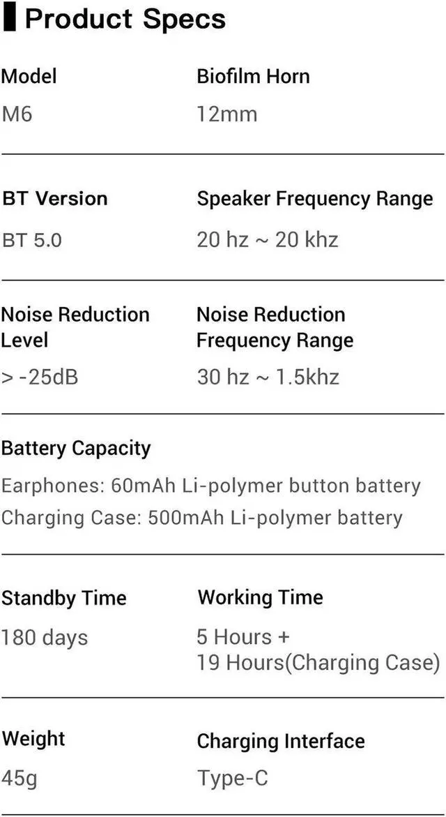 Working Time:5 Hours + 19 Hours(Charging Case)