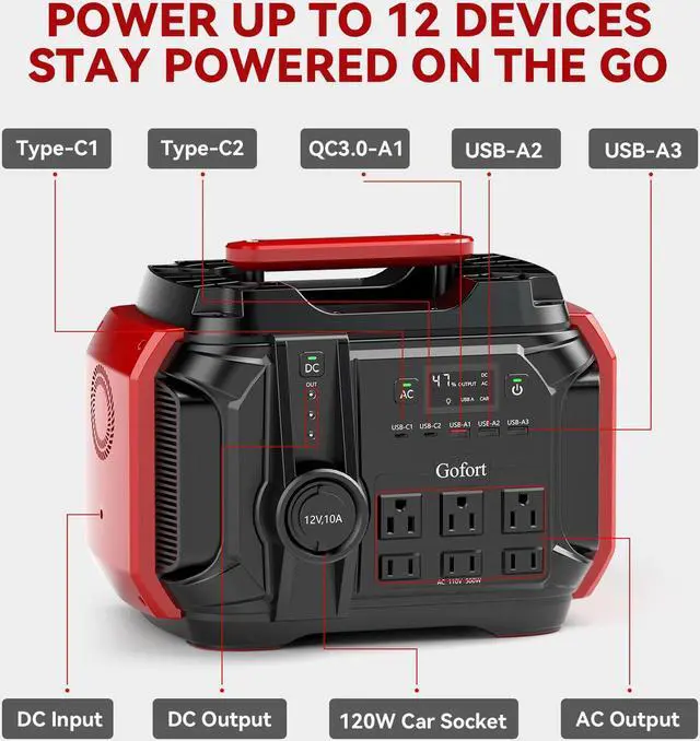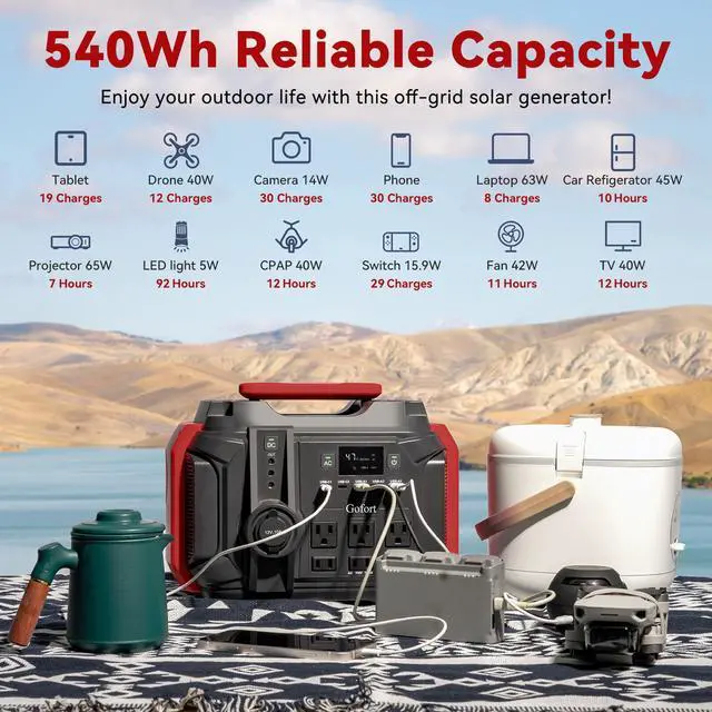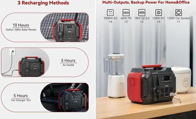 GOFORT Solar Generator 500W Battery Power Station 3 Charging Modes Outdoor I6I8