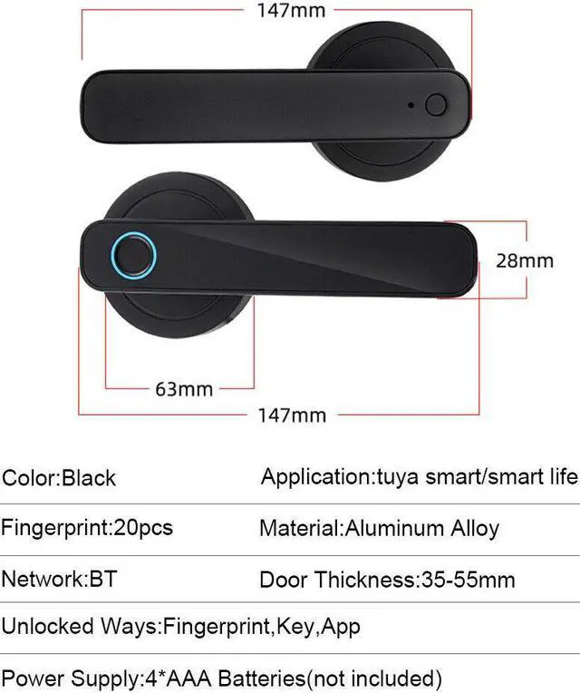 Fingerprint Door Lock Keyless Entry Biometric Door Lock with Handle O3T2