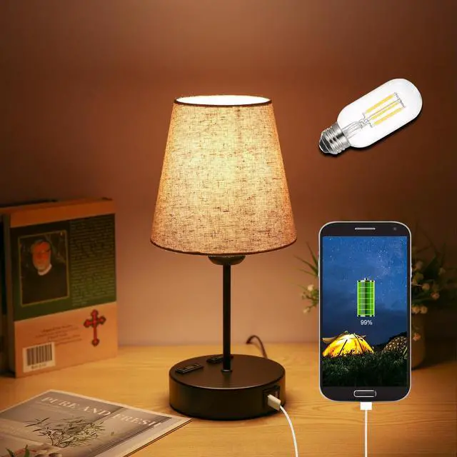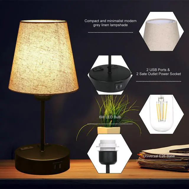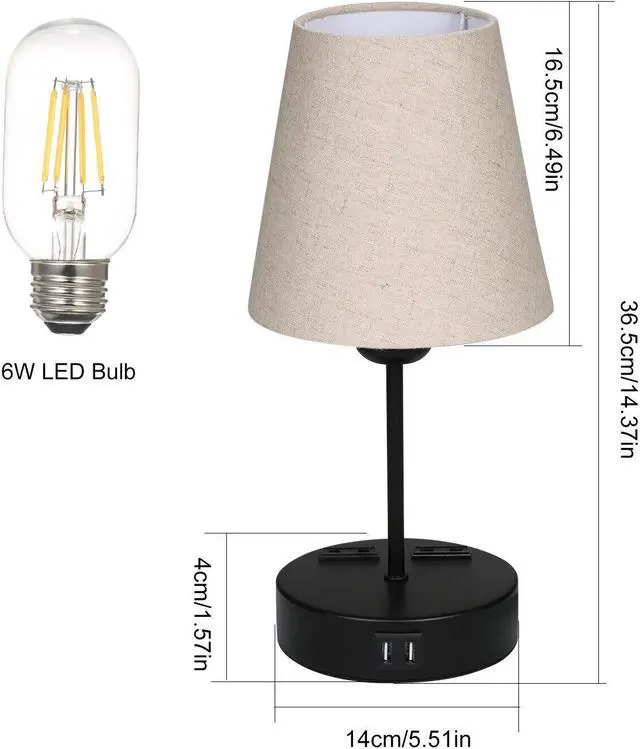 Bedside Desk Lamp Night Light LED With 2*USB Dimmable For Reading Working U7E4