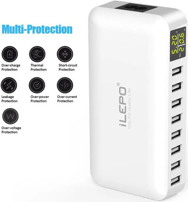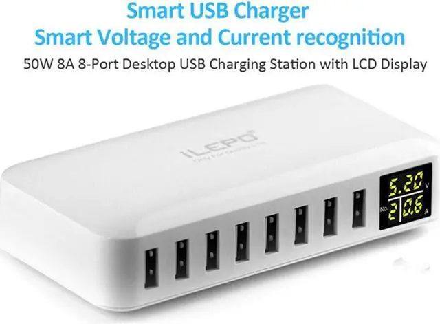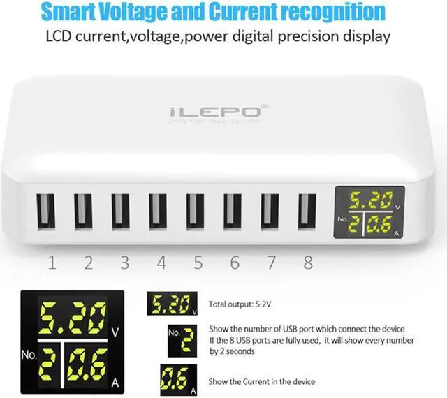 8 Ports USB 50W 8A Multi Port USB Hub with LCD Display N5V2