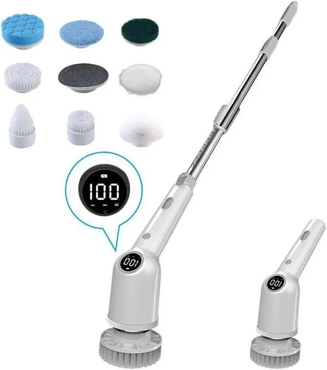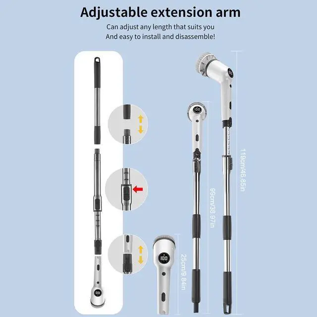 Cordless Electric Spin Scrubber IPX4 Waterproof Extension Arm 8 Brush Head W9G8