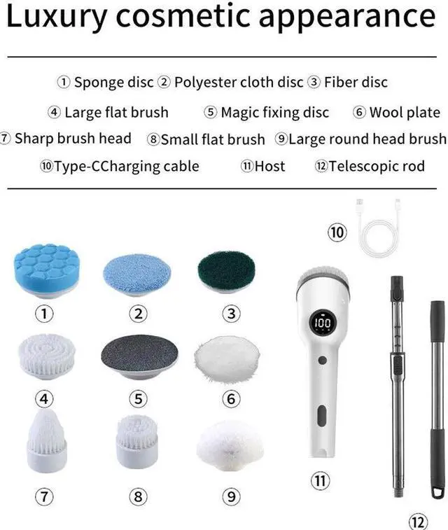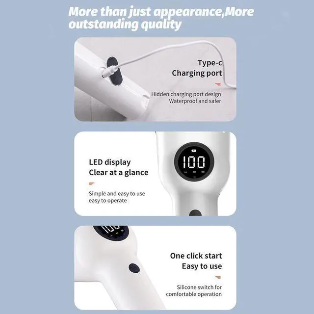 Features;Adjustable Extension Arm, Cordless, Electric, 360°, 3 Speeds, Waterproof, LED digital screen, Adjustable Length & Angle, USB Type-C Rechargeable, long-lasting power, strong power, one button operation, easy to use, long range, intelligent rotation