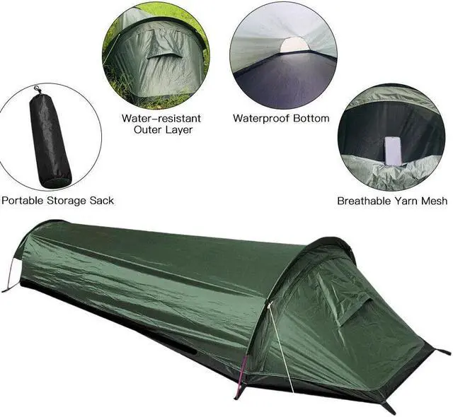 Outdoor Single Person Bivy Tent Waterproof Backpacking Tent for Hunting E0N1