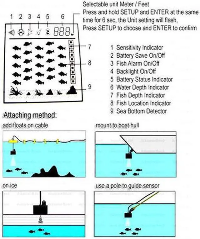 LUCKY 100m LCD Sonar Fish Finder Portable Handheld Alarm Echo Detection G5T6