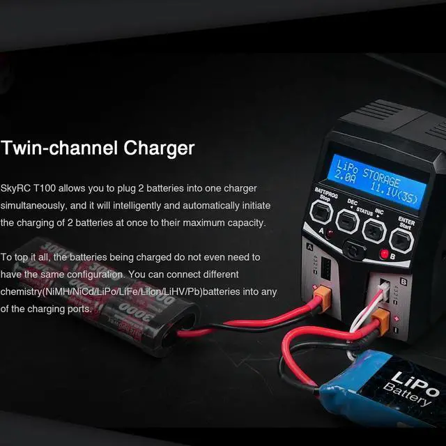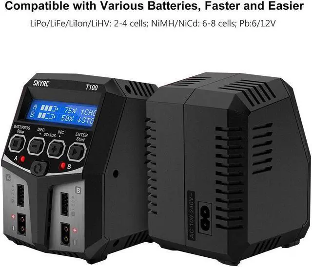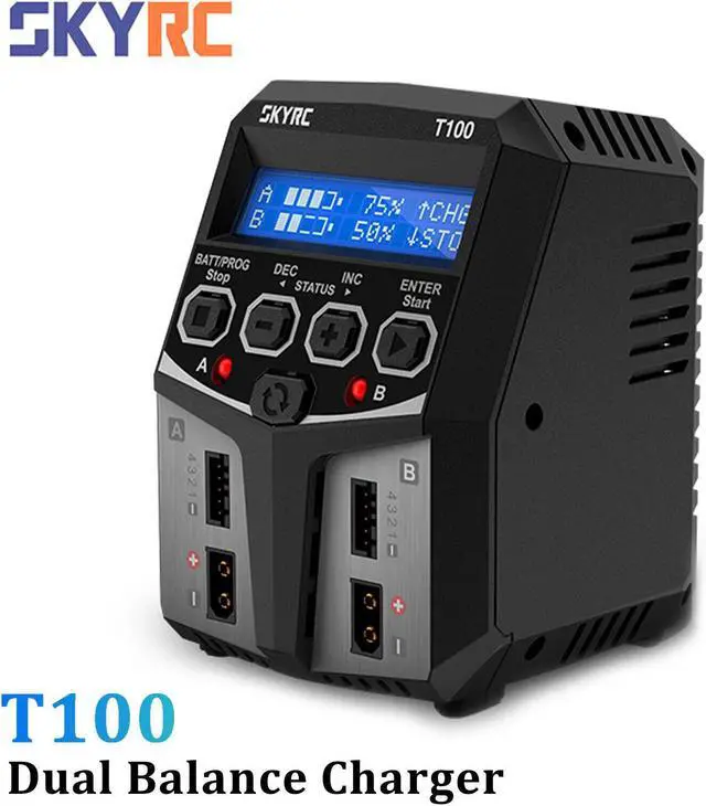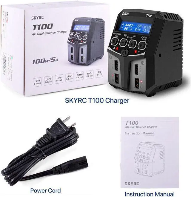 SKYRC T100 Dual Balance Charger 5A 2X50W AC100-240V XT60 for RC Helicopter A8Q4