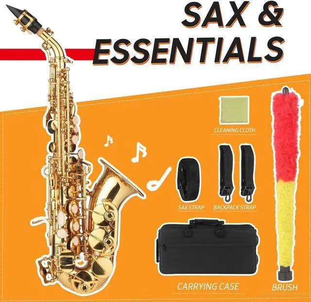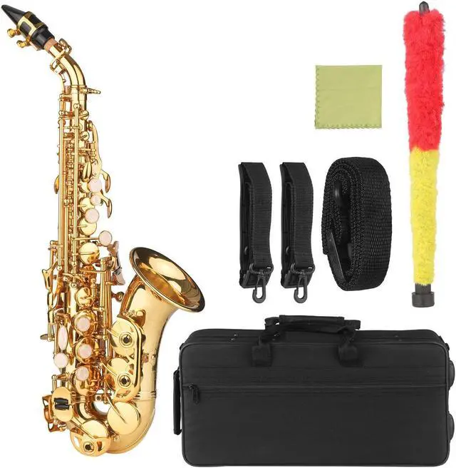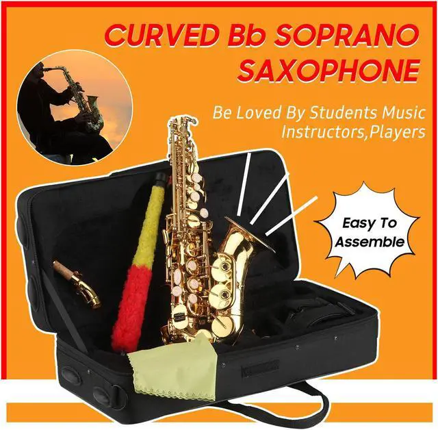 Soprano Saxophone Brass Lacquered Curved Bb Sax W/ Carry Care Kit Z3R6