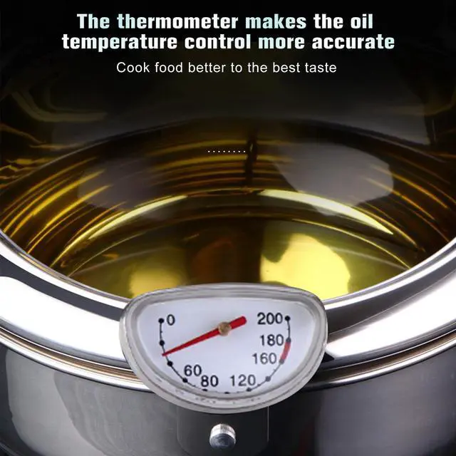 Features:with Thermometer,double handle, detachable Oil Drip Drainer Rack,non-stick, non-lampblack