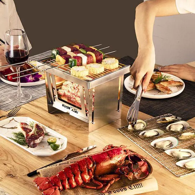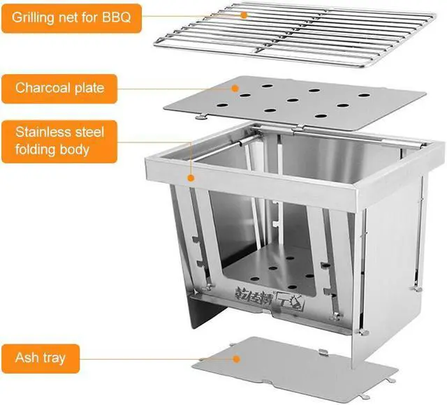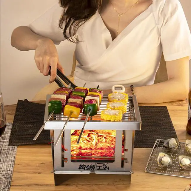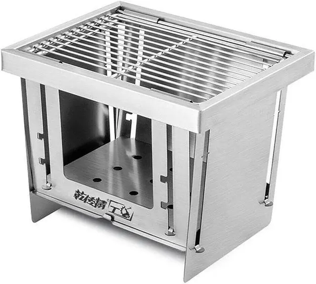 Portable Wood Burning Camping Folding BBQ Grill For Home Use R0R6