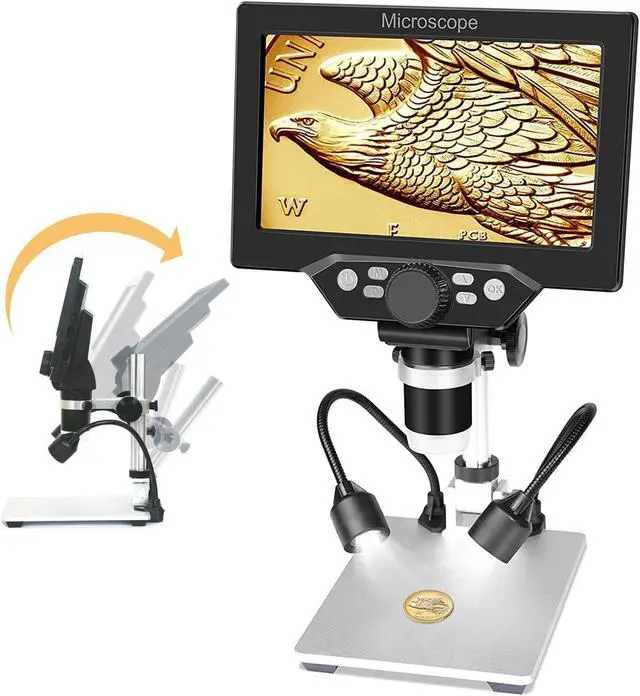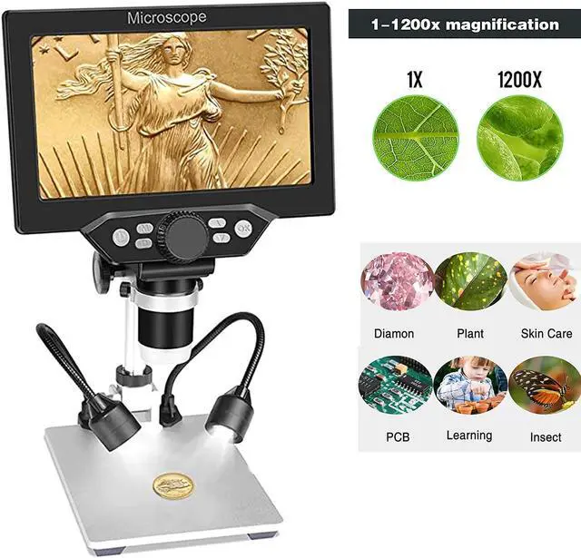 Digital Microscope 7 Inch Large Color Screen LCD 12MP 1-1200X Magnifier M3A8