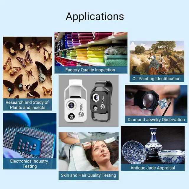 200X Portable Microscope Universal Mobilephone Microscope with 6 T4E6