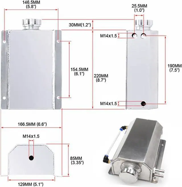 2L Aluminum Radiator Coolant Overflow Bottle Recovery Water Tank Universal C3B4