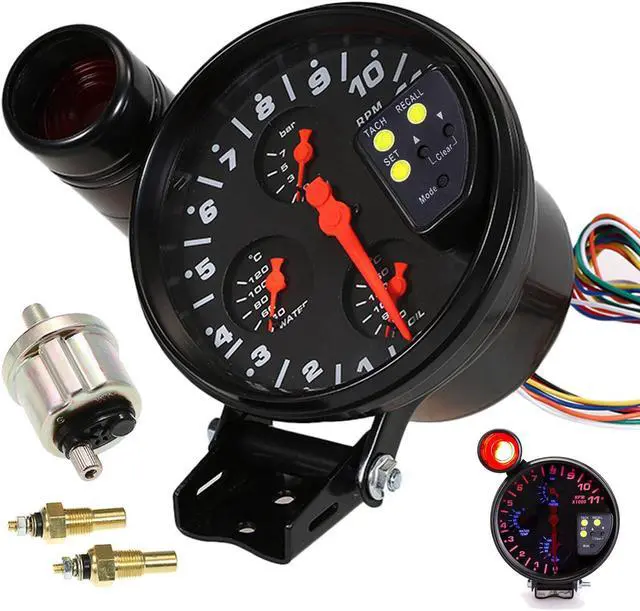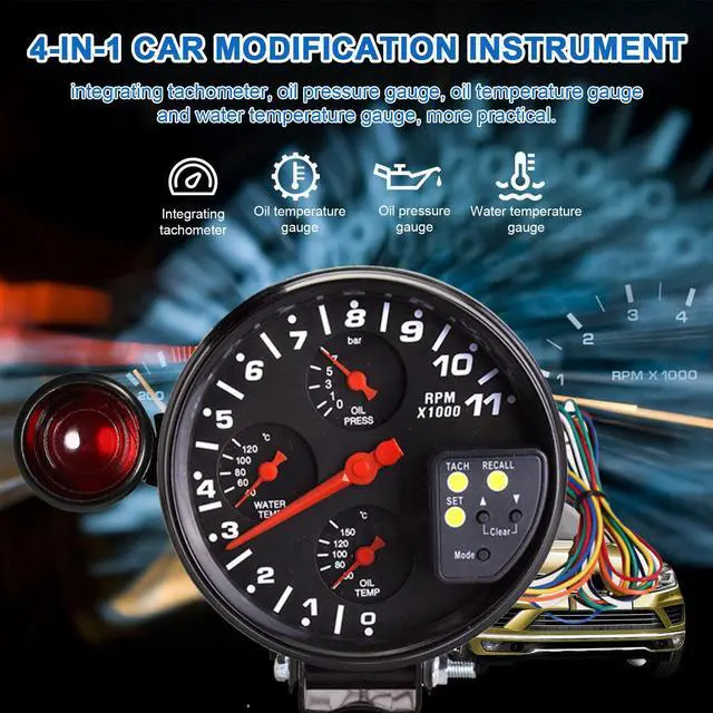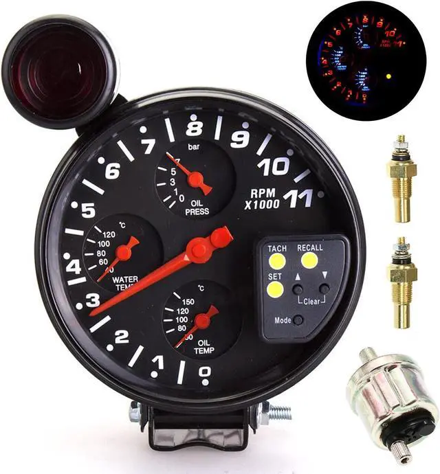 5" 4IN1 11K RPM Tachometer Oil Pressure &Water+Oil Temp Gauges with Sensor A3V9