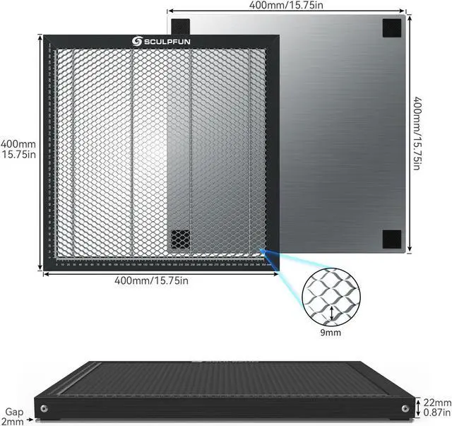 SCULPFUN 400x400mm Laser Cutting Honeycomb Working Table Board Steel Panel D3E0