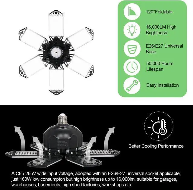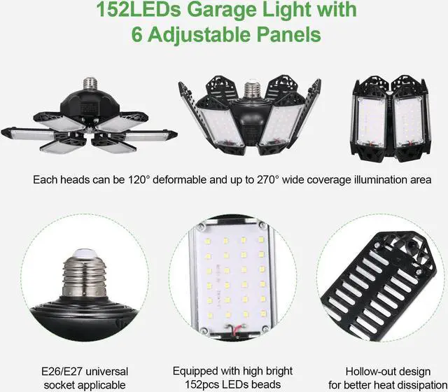 2 Pcs Garage E26/E27 Ceiling Adjustable Panels Garage Warehouse B6W7