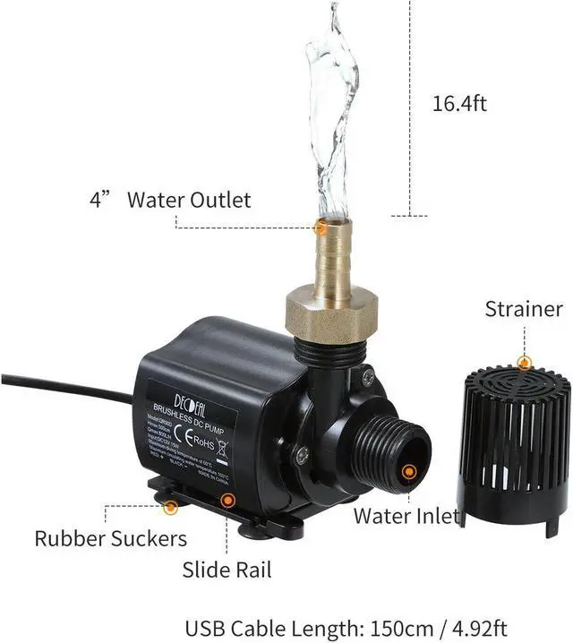 DECDEAL DC12V Brushless Water Pump Micro Ultra-quiet Water Pump Submersible S3N6