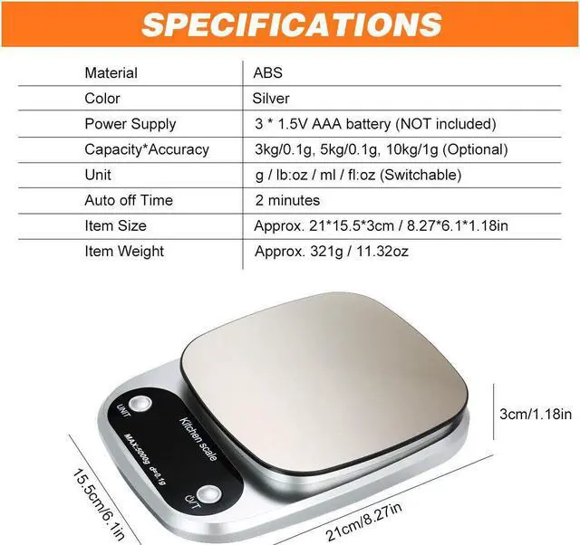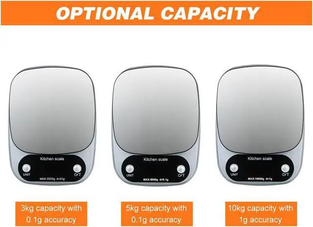 Capacity*Accuracy:3kg capacity with 0.1g accuracy / 5kg capacity with 0.1g...