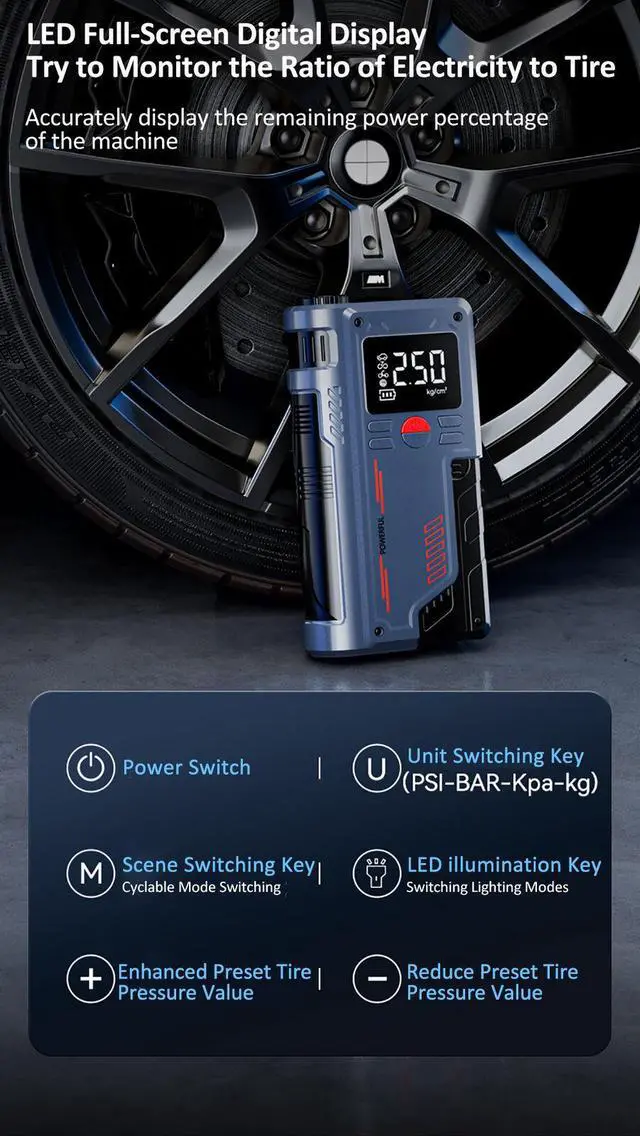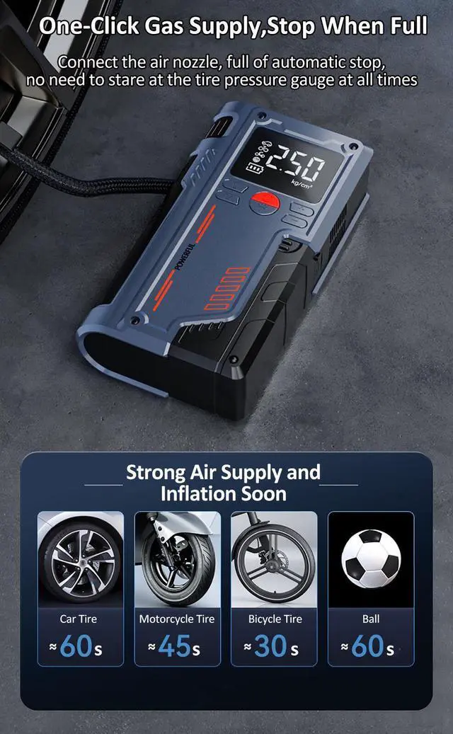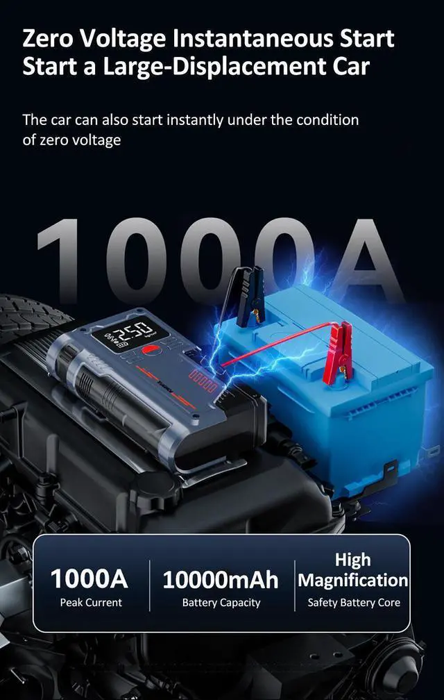 14.8V Tire Inflator Car Jump Starter 1000A 10000mAh W0Q7