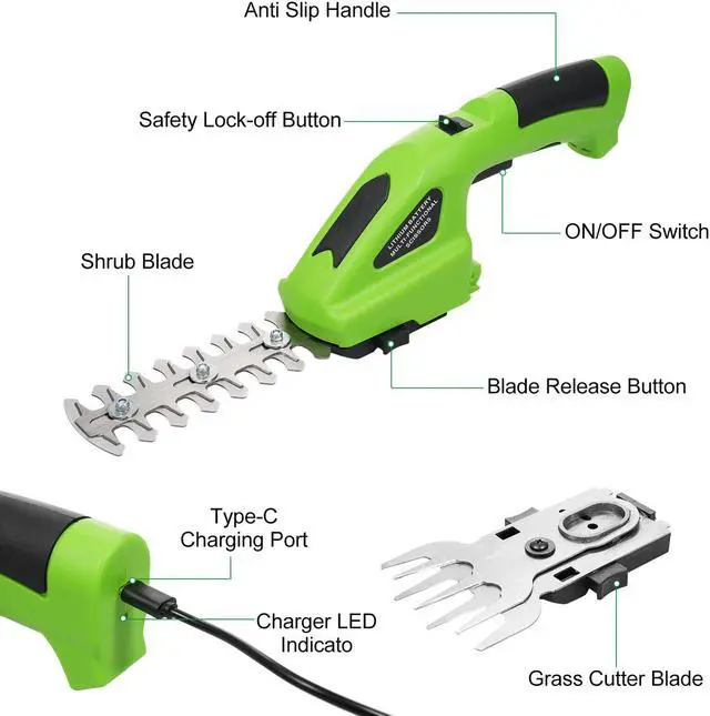Cordless Hedge Trimmer, 2-in-1 Handheld Hedge Trimmer, 7.2V Electric Grass J1O0
