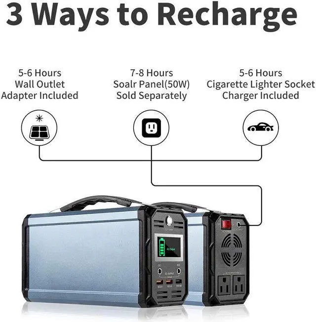 Features:Portable, Larger Capacity & Pure-sine Wave, 7 Charging Output Ports, 3 Charging Modes