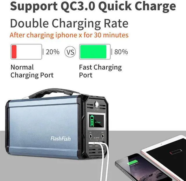 Flashfish G300 Portable 300W 222Wh Solar Generator Power Station Camping I1A2