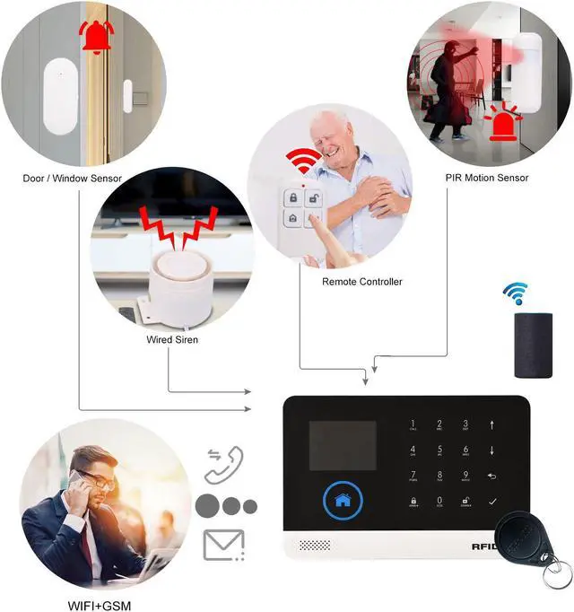 433MHz GSM Wireless WIFI Smart Home Burglar Security Alarm 16 Piece DIY Kit T2K5