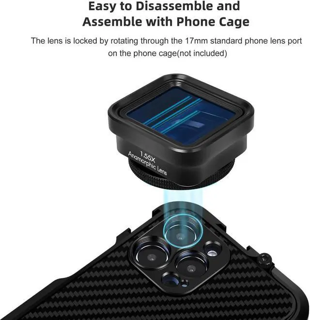 Mobile Phone Anamorphic Movie Lens 1.55X Deformation for iPhone 15/14/13 K4G6