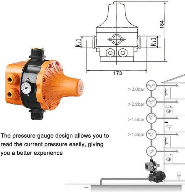 220 V-240V 1.1KW Pump Automatic Pressure Switch IP65 Home Household P6Y2