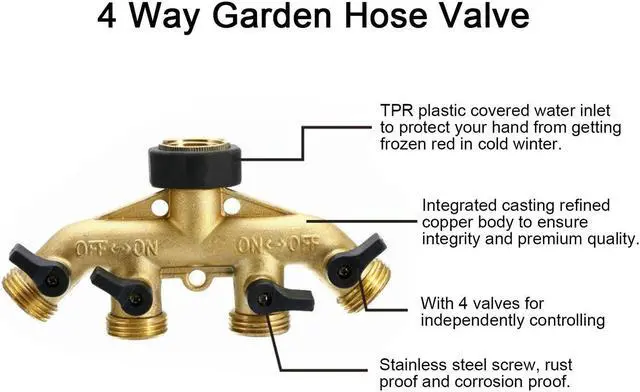 4 Way Garden Hose Splitter 3/4in Hose Connector Diverter with R5W0