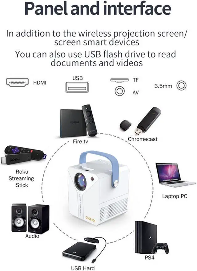 Portable Projector Android 9.0 High-Clear Large Screen Experience Hi-Fi P3M8
