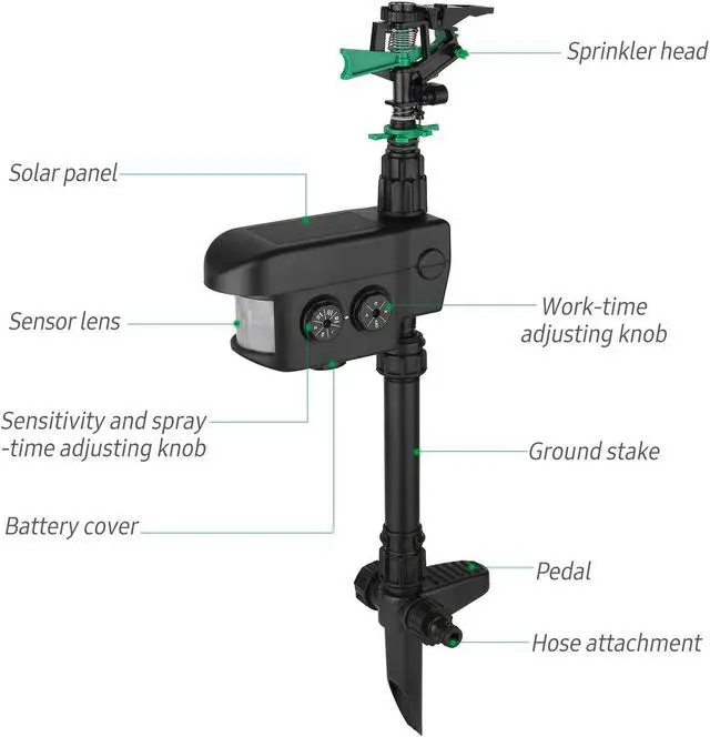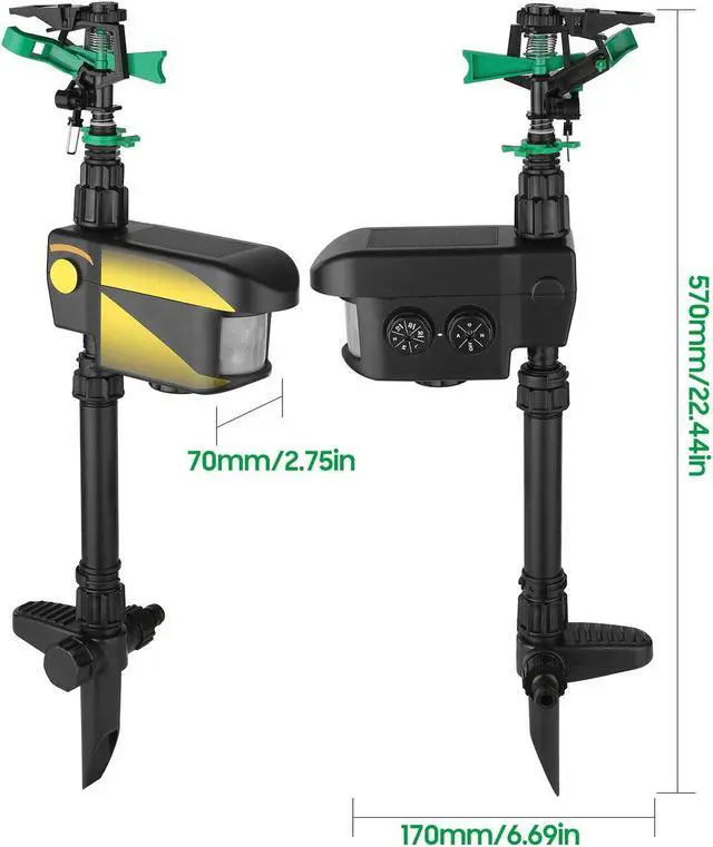 Solar Motion-Activated Sprinkler Animal Repeller with 3 Modes V4Z7