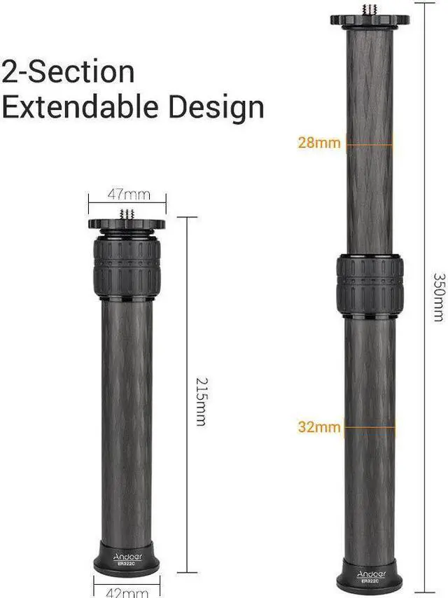 Andoer Carbon Fiber Tripod Extension Tube 2 Section Center Column Extender O0O7