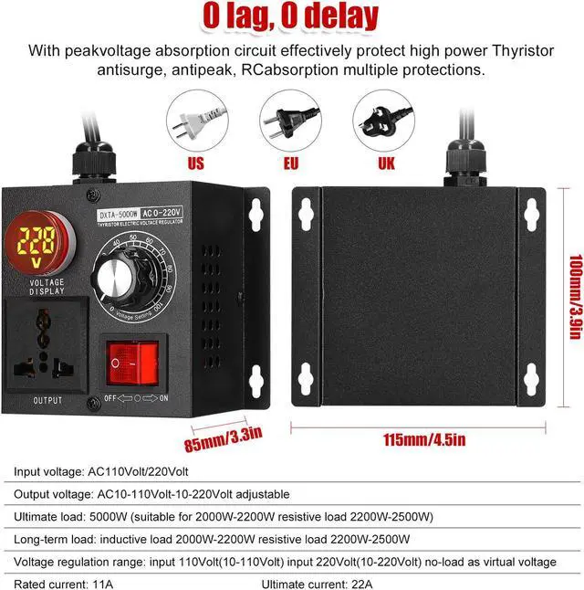 AC220V 5000W Stepless Voltage Regulator Portable Variable Monophase Voltage W5J1