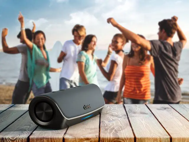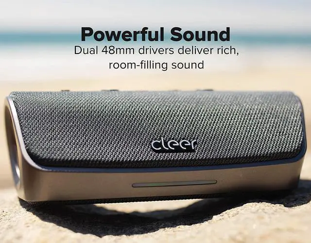 STAGE Smart Water Resistant Bluetooth Speaker with Alexa The Stage smart Bluetooth speaker is portable and supports up-to 15-hours playback. IPX7 waterproof rated, giving you a high-quality music experience for any adventure. Play music, check the weather, and plan a BBQ using your voice with Amazon Alexa, while a digital amplifier, dual 48mm drivers and passive radiators bring the beats. Using the Cleer Connect app, stereo pair two units together for an even bigger sound. IPX7 WATERPROOF Shockproof and IPX7 waterproof, the Stage wireless bluetooth speaker is rugged enough to take the party anywhere.